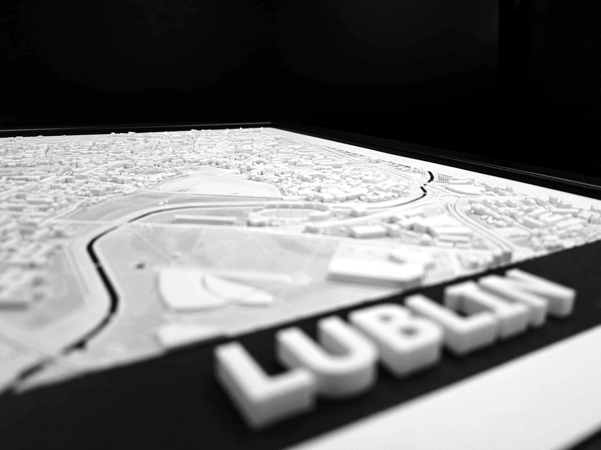 Nasze makiety wykonane z dbałością o najdrobniejsze detale za pomocą druku 3D. Umieszczone są w eleganckich i minimalistycznych czarnych ramach, które dodają im uroku i stylu.