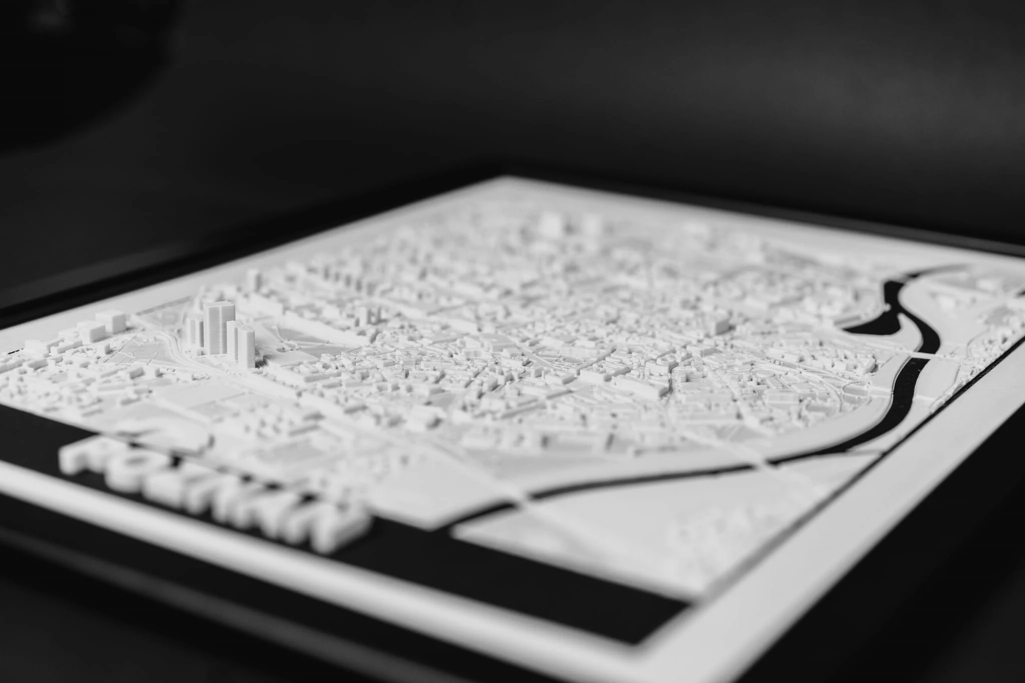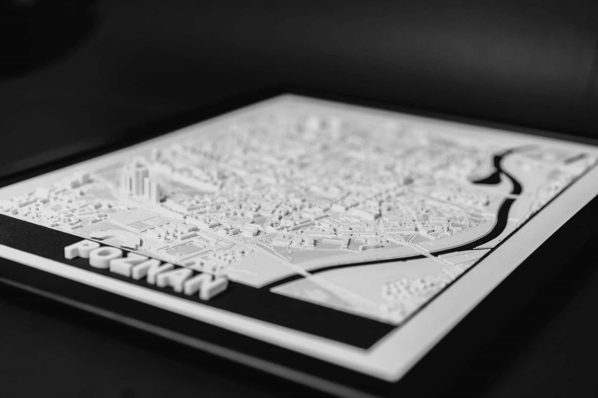 Nasze makiety wykonane z dbałością o najdrobniejsze detale za pomocą druku 3D. Umieszczone są w eleganckich i minimalistycznych czarnych ramach, które dodają im uroku i stylu.