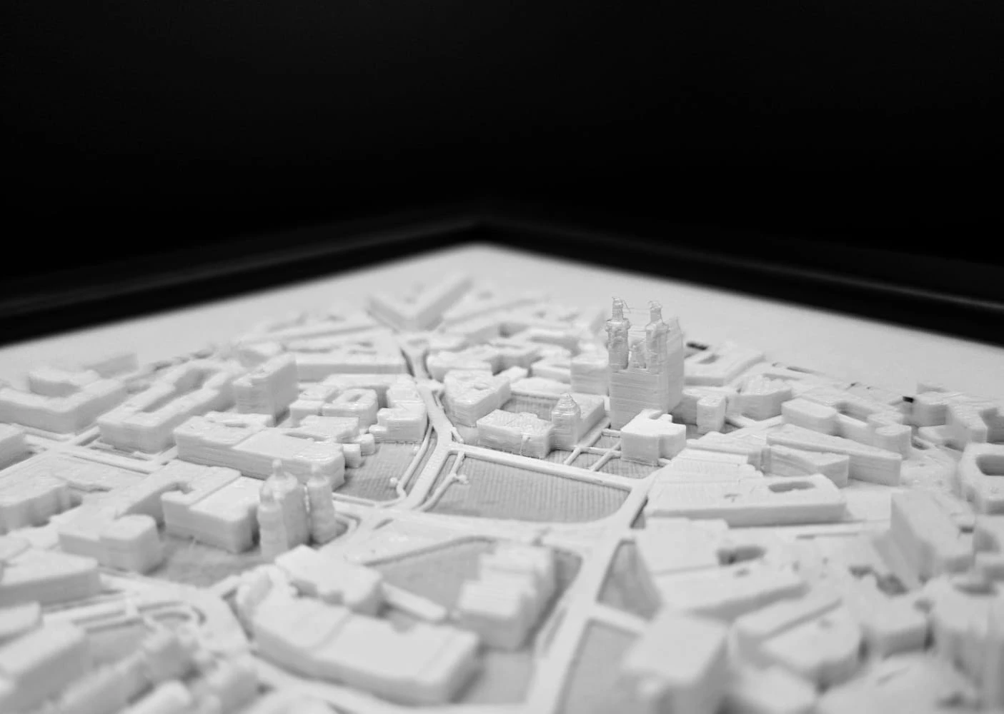 Nasze makiety wykonane z dbałością o najdrobniejsze detale za pomocą druku 3D. Umieszczone są w eleganckich i minimalistycznych czarnych ramach, które dodają im uroku i stylu.